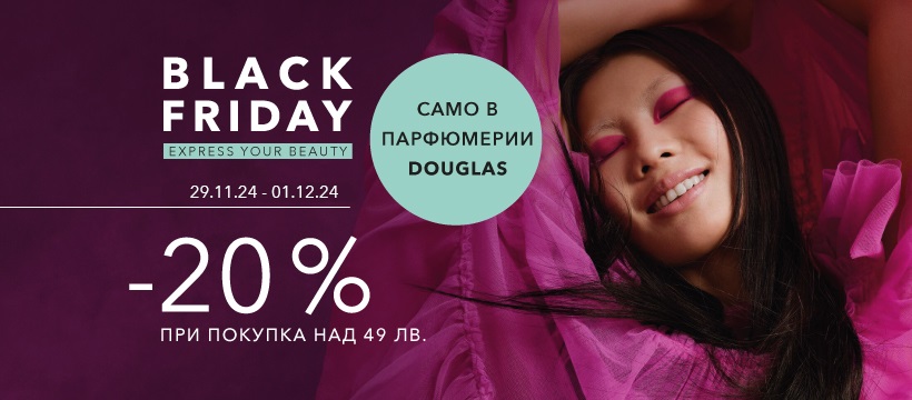 » Отстъпката е валидна САМО във физическите парфюмерии DOUGLAS за периода от 29.11.2024 г. до 01.12.2024 г. или до изчерпване на наличностите на продукти, които отговарят на условията на конкретната промоция.
