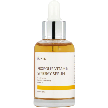 iUnik Propolis Vitamin Synergy Serum съдържа 70% прополис в комбинация с екстракт от Centella Asiatica. Той има успокояващ и противовъзпалителен ефект и двете вещества могат да помогнат за премахването на пъпки. Съдържа и различни витамини, които подобряват и избистрят тена на кожата.