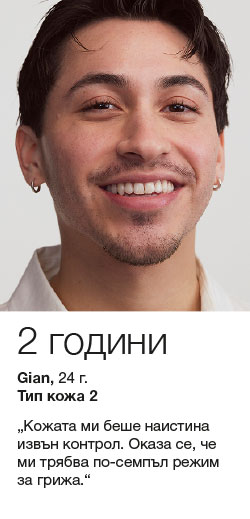 Усещате кожата: комфортна в зоната на бузите, мазна в Т-зоната.